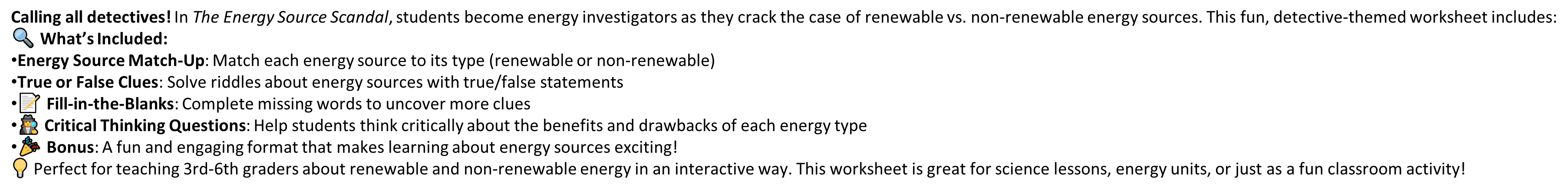 The Energy Source Scandal: Renewable vs. Non-Renewable Detective Worksheet $3$3https://schema.org/InStockusdthe curious cellthe curious cellAdd to cart3 pagesSize535 KBLength6 pagesAdd to wishlist New wishlistShareShare on XShare on Facebook Copy linkCopy product URL