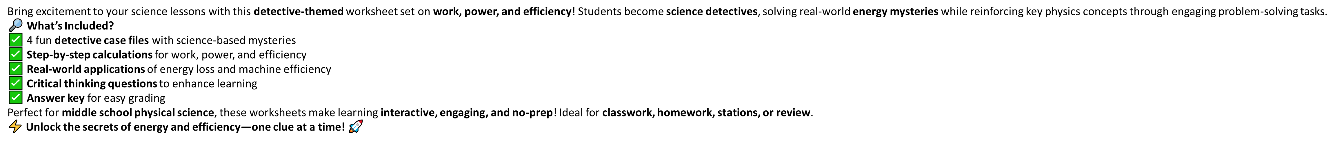 Power Puzzle: Detective Worksheets on Work, Power, and Efficiency!$3$3https://schema.org/InStockusdthe curious cellthe curious cellAdd to cart3 pagesSize394 KBLength5 pagesAdd to wishlist New wishlistShareShare on XShare on Facebook Copy linkCopy product URL