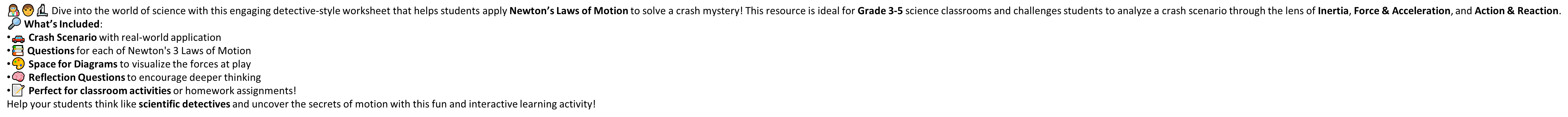 Crash Investigation: Newton’s Laws of Motion Detective Worksheets $3$3https://schema.org/InStockusdthe curious cellthe curious cellAdd to cartSize463 KBLength7 pagesAdd to wishlist New wishlistShareShare on XShare on Facebook Copy linkCopy product URL